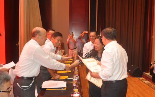 主席臺就坐領(lǐng)導為獲獎?wù)哳C獎(2)