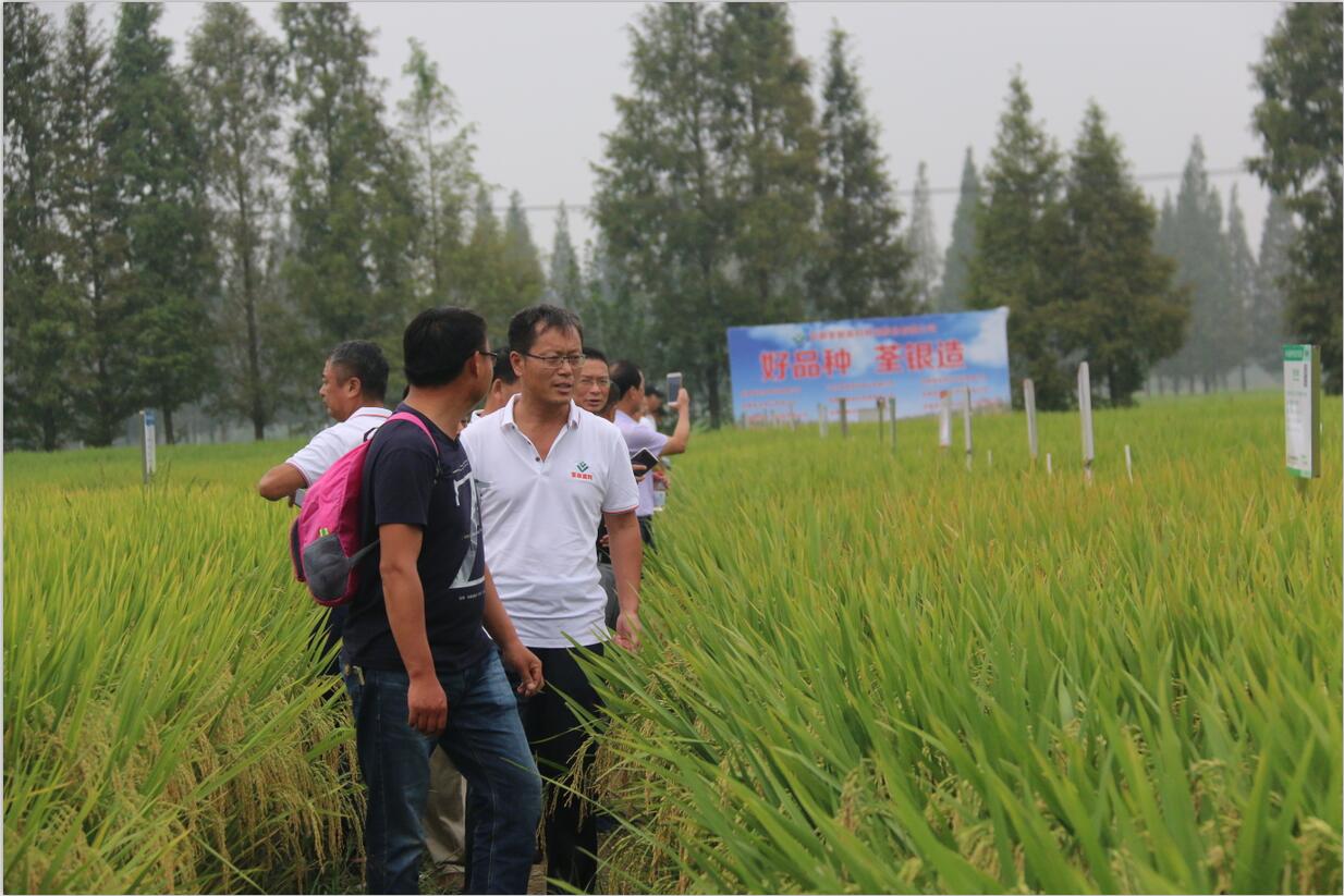 ??? 展會在安徽宿州市、合肥廬江縣和安徽省農(nóng)大郭河產(chǎn)學(xué)研基地設(shè)立了3個室外品種種植展區(qū),占地600畝。荃銀高科及控股子公司種植約80多個水稻新品種供大家觀摩,得到廣泛好評。