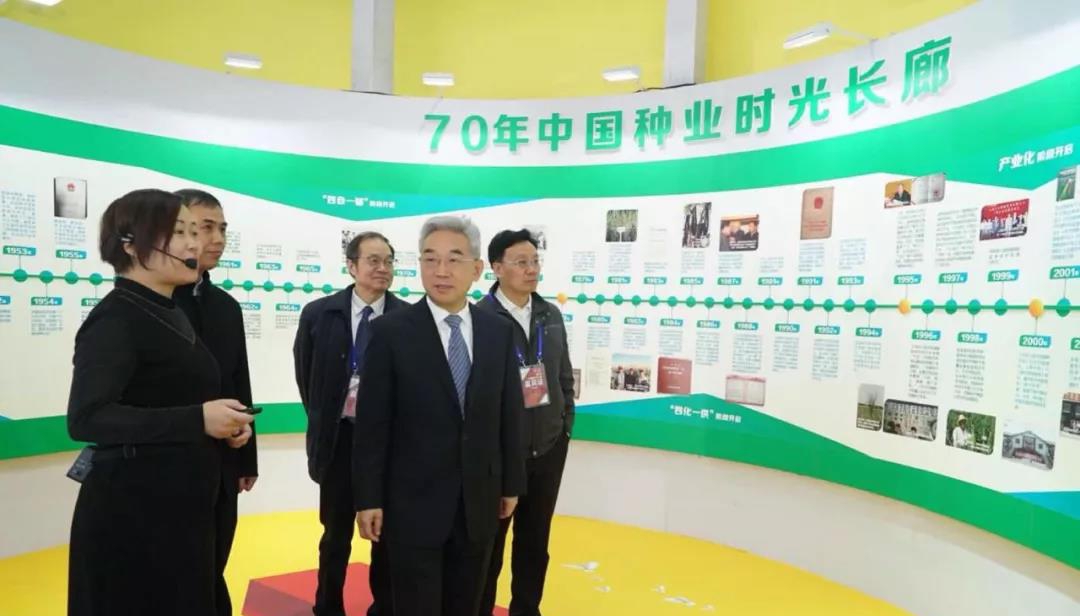 ??? 開(kāi)幕式后,張?zhí)伊指辈块L(zhǎng)參觀了“種子力量——新中國(guó)成立70周年與改革開(kāi)放40年中國(guó)種業(yè)成就展”以及企業(yè)展廳。農(nóng)業(yè)農(nóng)村部科技教育司司長(zhǎng)廖西元、種業(yè)管理司副司長(zhǎng)周云龍、種業(yè)管理司副司長(zhǎng)吳曉玲、中國(guó)種子協(xié)會(huì)副會(huì)長(zhǎng)鄧光聯(lián)等領(lǐng)導(dǎo)陪同巡展。