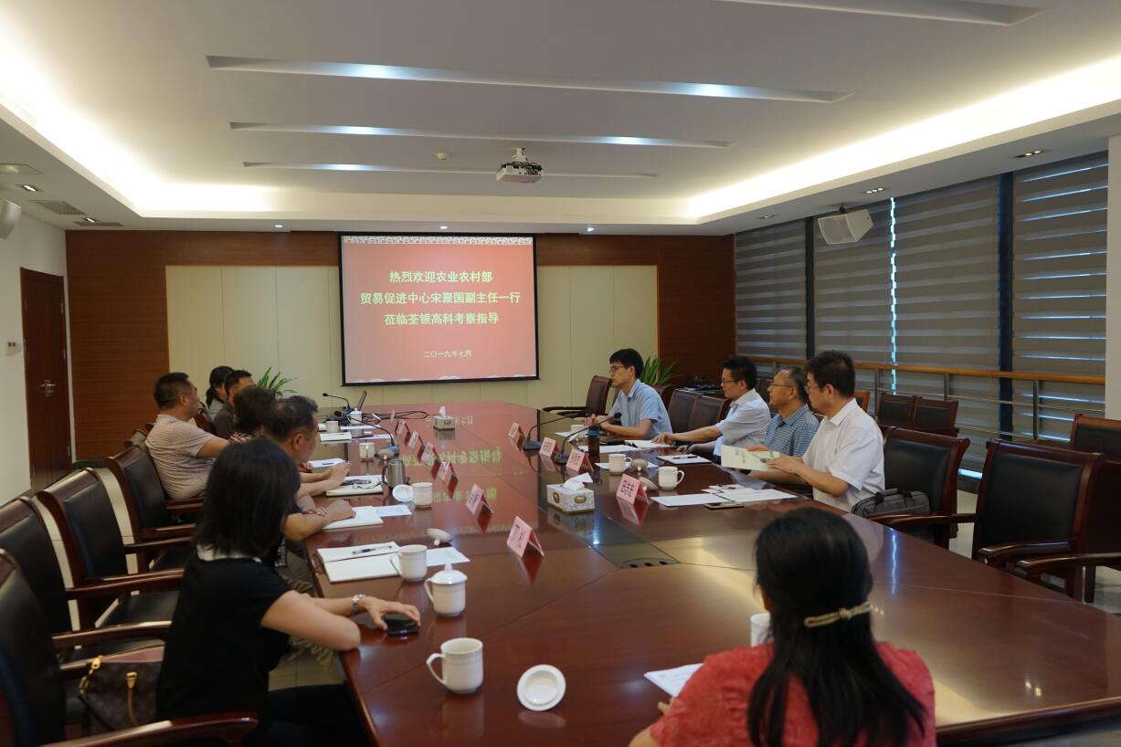 ??? 2019年7月9日,農(nóng)業(yè)農(nóng)村部農(nóng)業(yè)貿(mào)易促進(jìn)中心宋聚國副主任一行蒞臨荃銀高科調(diào)研指導(dǎo),省農(nóng)委外事外經(jīng)處處長韋艾平、調(diào)研員閆玉平等陪同調(diào)研。荃銀高科副董事長、總經(jīng)理張琴,副總經(jīng)理江三橋等熱情接待了宋聚國副主任一行。