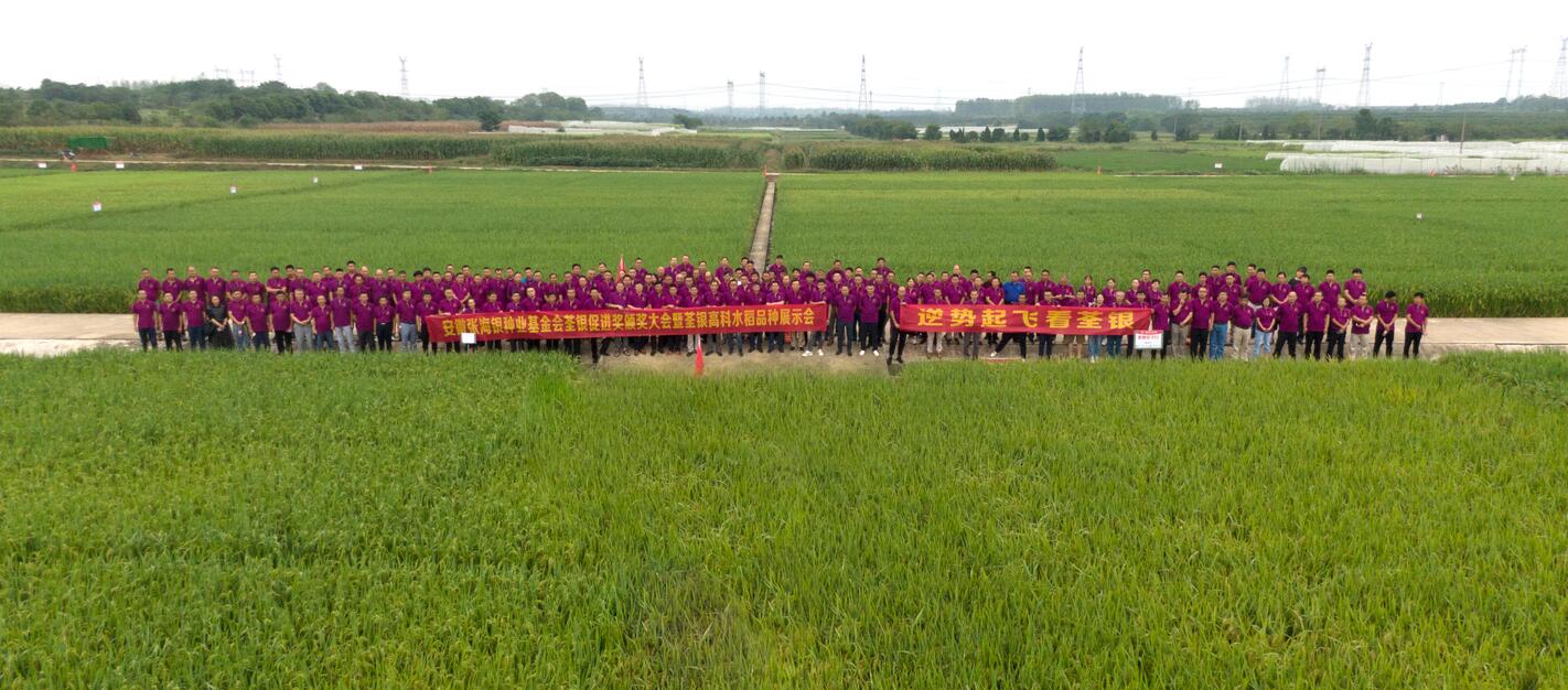 ??? 2019年9月1日,安徽張海銀種業(yè)基金會(huì)“荃銀種業(yè)促進(jìn)獎(jiǎng)”頒獎(jiǎng)大會(huì)暨荃銀高科水稻品種展示會(huì)在合肥召開。中國(guó)種業(yè)十大功勛人物、荃銀高科創(chuàng)始人、安徽張海銀種業(yè)基金會(huì)理事長(zhǎng)張海銀,安徽省種子管理總站原站長(zhǎng)、基金會(huì)專家組顧問成員、“荃銀種業(yè)促進(jìn)獎(jiǎng)”評(píng)審委員會(huì)主任孔令傳,荃銀高科副董事長(zhǎng)、總經(jīng)理、基金會(huì)副理事長(zhǎng)張琴,荃銀高科董事、常務(wù)副總經(jīng)理、基金會(huì)副理事長(zhǎng)王玉林,荃銀高科副總經(jīng)理、荃銀農(nóng)科院院長(zhǎng)、首席技術(shù)官?gòu)垙暮?,基金?huì)秘書長(zhǎng)張彤,荃銀高科總經(jīng)理助理劉義銳、監(jiān)事會(huì)主席謝慶軍,荃銀高科工會(huì)主席、基金會(huì)監(jiān)事鄭滿生,中化現(xiàn)代農(nóng)業(yè)、中化化肥等單位領(lǐng)導(dǎo)嘉賓,以及來(lái)自湖北省16個(gè)縣區(qū)180多位三農(nóng)一線種業(yè)工作者參加了會(huì)議。
