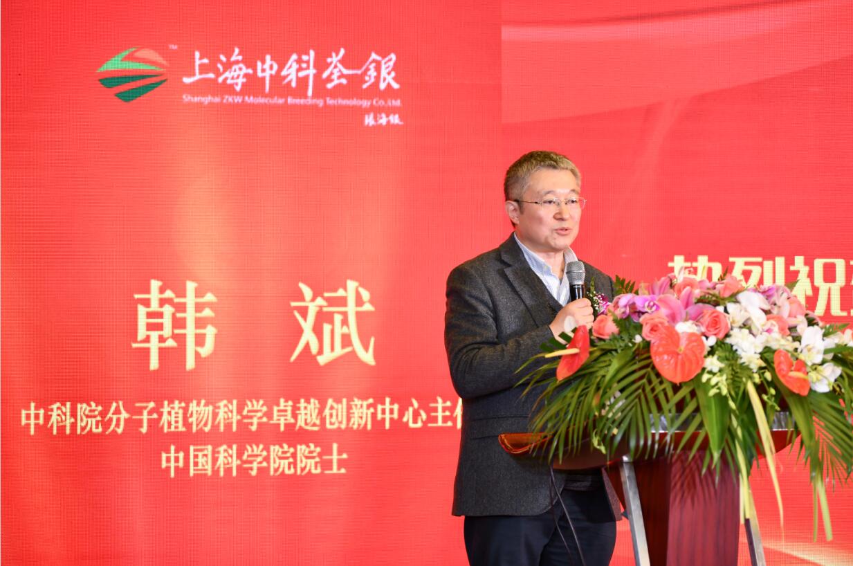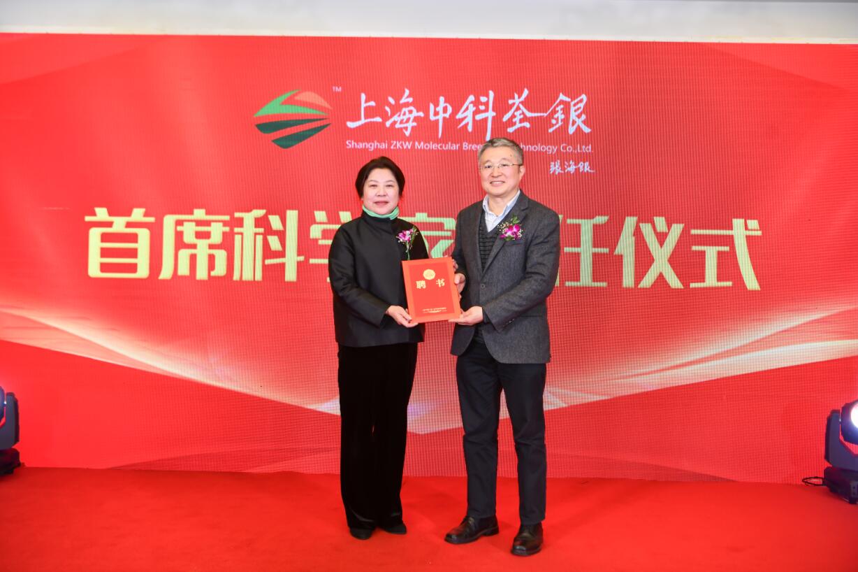 ? ? ?韓斌院士在致辭中首先向關(guān)心支持上海中科荃銀的各位領(lǐng)導(dǎo)、嘉賓表示感謝。他表示,基礎(chǔ)研究與應(yīng)用研究結(jié)合,一定能為育種創(chuàng)新開辟出新路子。上海中科荃銀的成立既有挑戰(zhàn),更是機遇,上海中科荃銀各團隊將珍惜機遇,努力為中國種業(yè)技術(shù)創(chuàng)新與技術(shù)進步作貢獻!會上舉行了上海中科荃銀首席科學(xué)家聘任儀式,上海中科荃銀董事長張琴女士為韓斌院士頒發(fā)聘任證書。