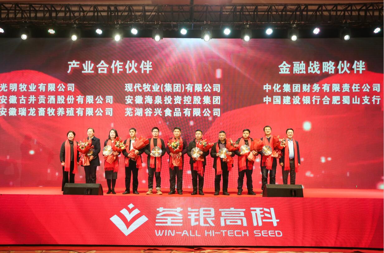 ? ? 創(chuàng)新合作,共贏發(fā)展。會上進行了荃銀高科產(chǎn)業(yè)合作伙伴、金融戰(zhàn)略伙伴頒獎儀式。近年來,荃銀高科積極開展農(nóng)業(yè)生產(chǎn)社會化服務(wù)探索,不斷加強與產(chǎn)業(yè)伙伴、金融公司合作,構(gòu)建“品種+品牌+資本”戰(zhàn)略發(fā)展之路,打造產(chǎn)業(yè)鏈,形成閉環(huán),創(chuàng)新發(fā)展模式,為廣大農(nóng)戶提供從種到收一條龍服務(wù),推進一二三產(chǎn)業(yè)融合,為現(xiàn)代農(nóng)業(yè)提供整體解決方案。