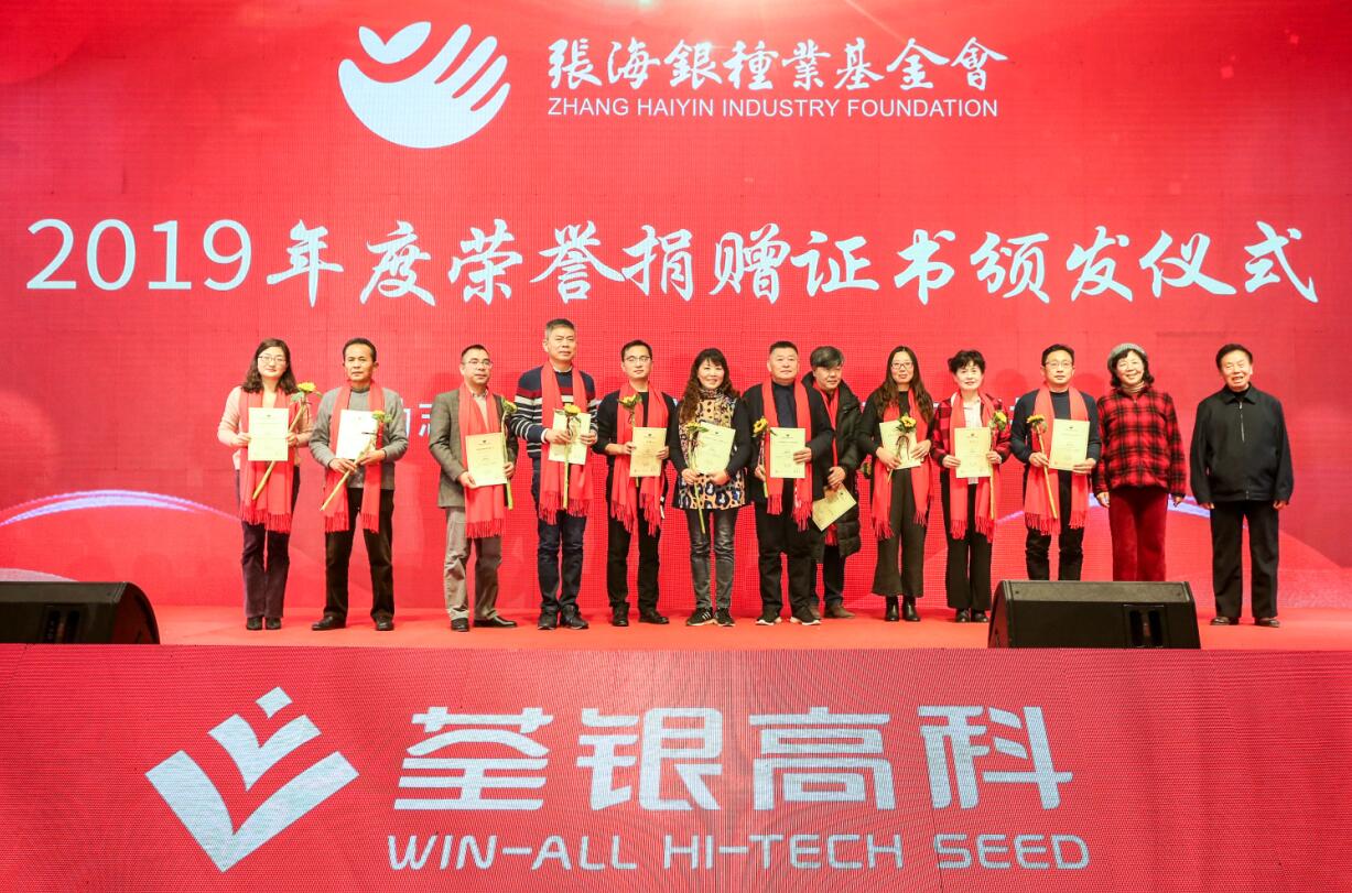? ? 公益無界,大愛無疆。會議還進行了安徽張海銀種業(yè)基金會頒發(fā)捐贈證書儀式,鼓勵更多人踐行公益,傳遞社會大愛力量。會議現(xiàn)場,荃銀高科員工及有關(guān)愛心人士向安徽張海銀種業(yè)基金會捐贈共計40.78萬元,用于激勵為中國種業(yè)發(fā)展作出突出貢獻的集體和個人,以及助學公益項目和慈善事業(yè),助力公益,薪火相傳。